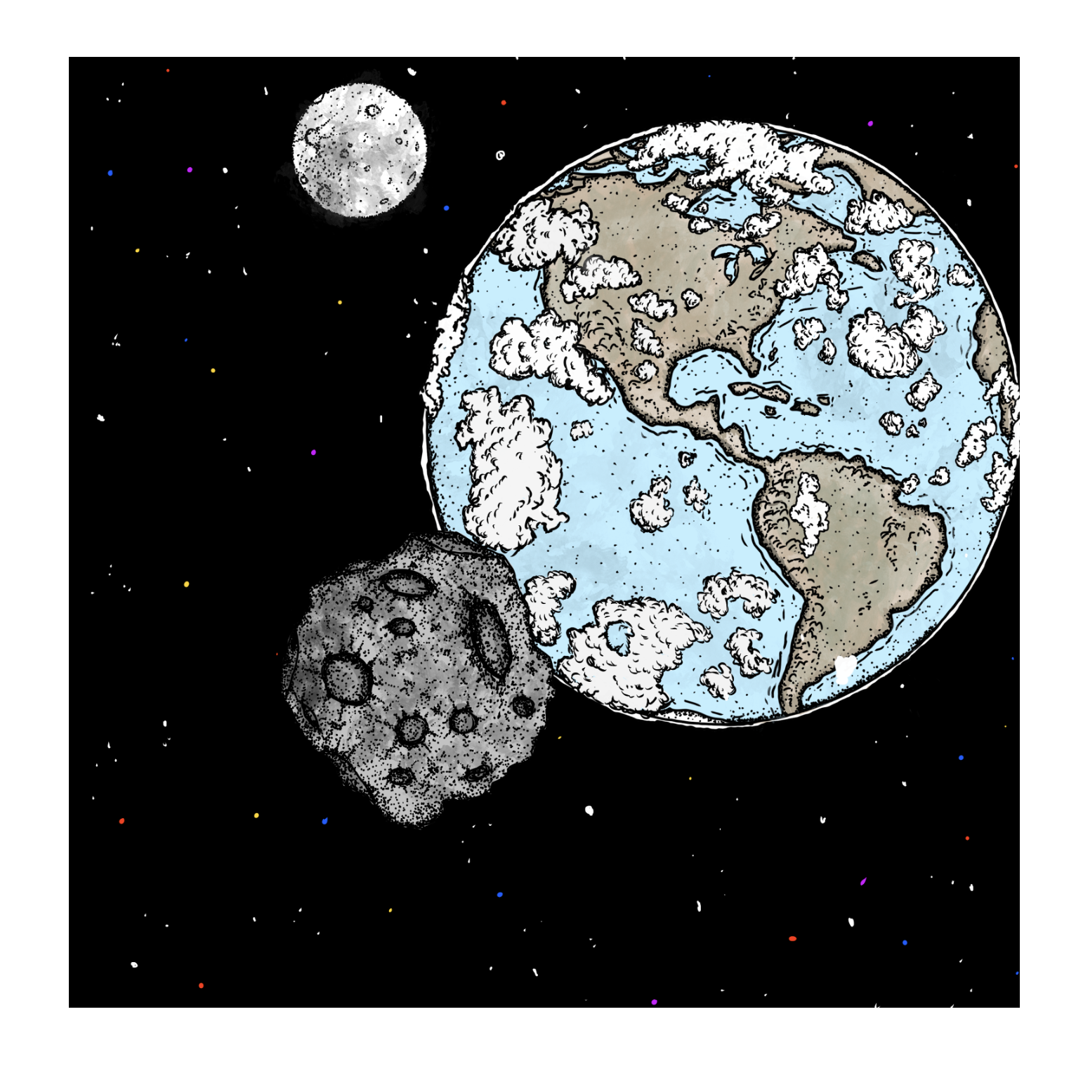The world looks to be clobbered by an asteroid. What can be done? This illustrative story tells the tale of how even the most minute of events can cause huge effects later. A fun story that children of all ages will love. It is filled with onomatopoeias and colorful drawings of all creatures great and small.