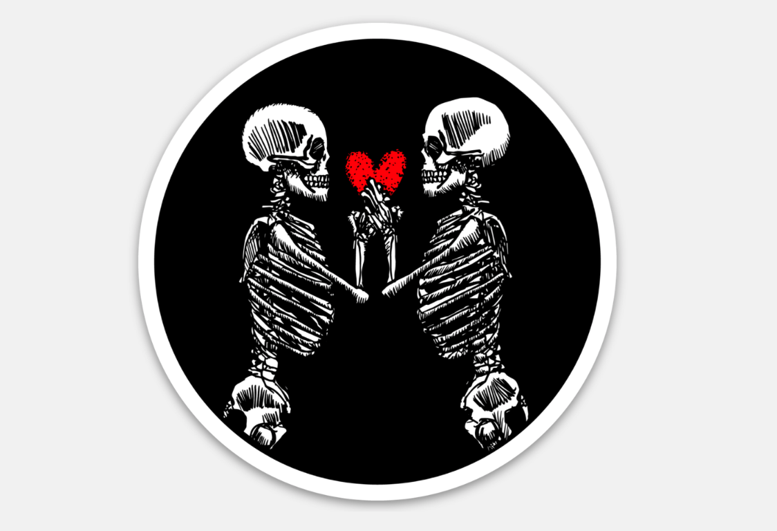 BellavanceInk: Two Skeletons Embracing With Love Vinyl Sticker Hand Drawn Illustration